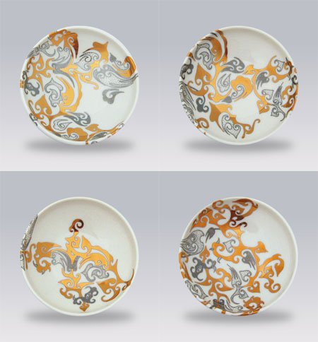 The Karma dinnerware and serving collection by Caskata is right on trend Hand-decorated in the USA with 23 karat gold and platinum on fine porcelain Dishwasher safe but we recommend hand washing to preserve the luster Do not microwave Please allow three weeks for delivery Express shipping is n