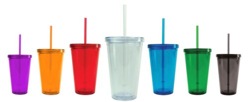 16 Ounce Double Wall Insulated Acrylic Tumbler Multiple Colors to choose Red - Sky Blue - Dark Blue - Black - Orange - Clear - Green Package includes a one color logo imprint Please send logo in vector format to me after purchase Straw and Cap Included BPA Free Hand wash Only For Larger