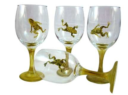 ArtisanStreet's Set of 4 Wine Glasses with Frog Design. Hand Painted. One of a Kind. Signed