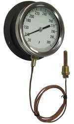 Remote Mount Thermometer Vapor Actuated Display Analog Temp Range 0 to 100 F Mounting Surface With Bottom Outlet Dial Size 45 In Accuracy -1 Scale Division Line Length 120 In Line Length 10 Ft Sensor Dimension 716 In Power Source Vapor Case Material Cast Aluminum Tube Material B