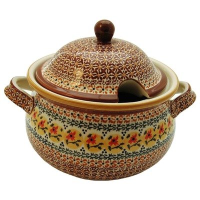 1004-DU70 Features -3 Qt Terrine with cover-Stoneware material-Available in DU70 design-Made in Poland Collection -Traditional collection